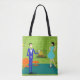 Esta Bolsa de Tote de la Pareja Moderna de Mediados del Siglo se parece a una escena de una comedia romántica. El estilo de los años 60 presenta un diseño de arte minimalista y cuenta con una atractiva pareja de personalizados que disfrutan de una velada romántica en casa. La sofisticada sala cuenta con una pared de piedra verde con una chimenea que arde. El mobiliario de la habitación incluye un naranja, una tumbona a juego con el reposapiés, un reloj de pared rojo, de starburst, una lámpara amarilla, de sputnik y una mesa naranja, en la que se encuentra un reproductor de discos portátil de color verde. En el suelo, al lado de la mesa final, se puede ver un disco de vinilo saliendo de la portada de un álbum kitsch. En el centro del parqué verde, hay una gran alfombra rectangular verde azulada. En medio de la escena, tenemos una pareja muy sofisticada. Hay un hombre cortés con un traje azul real, una camisa blanca y una corbata azul. El hombre alto, oscuro y guapo está mirando a su adorable compañero. La elegante mujer de cabello cuervo lleva un vestido de aqua flouncy. Cada una de ellas sostiene un cristal de martini de cristal con una oliva flotante. Salud! ¡Aquí está la velada perfecta en casa!