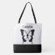 bolsa de tocador de mariposa blanca y negra personalizado. Agregue su nombre al centro del bolso de tote utilizando la plantilla personalizada.