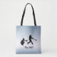 Aquí hay una bolsa de tote azul de béisbol que presenta un catcher y un bateador en una silueta negra y el texto: Play Ball. Puede cambiar o eliminar fácilmente el texto. ¡Añade tu jugador o equipo favorito!
