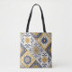 Infunde tu vida cotidiana con el encanto mediterráneo con esta bolsa de tote con motivos geométricos inspirados en las baldosas artesanales. La paleta vívida de azul cobalto y amarillo girasol recuerda a la cerámica tradicional de Europa del Sur, con un toque artístico moderno. Perfecto para los aficionados al diseño gráfico, al arte textil o a los accesorios de moda boho con personalidad. Ideal para excursiones, viajes o como una bolsa de día ecológica.