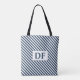 Este tote de moda, de rayas azules y blancas, ofrece un aspecto atemporal y de moda. Añade tus iniciales para hacerlo único tuyo. Ya sea que estés en el centro comercial, en el supermercado o en un día de descanso, este tote es el accesorio perfecto para completar tu ropa y mantener tus necesidades básicas en un solo lugar. ¡Haga hoy mismo su declaración y pida un pedido!