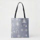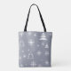 Bonitos de plata falsa o gris con árboles blancos de Navidad en una bolsa de Navidades de fondo gris. Moderna y moda y perfecta para todos sus Navidades y regalos de vacaciones. Para mamá, abuela, hermana, novias, etc. ¡Feliz Navidad y Felices Fiestas!