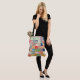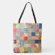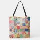 Una bolsa colorida con temática de tejido con mosaico simulado con motivos en una impresión general y un monograma sutilmente colocado cerca del fondo. La impresión falsa... no está en realidad colgada. Personalízalo con tu propio inicial el fácil editor de Zazzle, Ver muchos otros regalos con temática de costura en esta colección en Patchpourri en Zazzle.