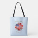 Tote de hombros - Dios bendiga a Estados Unidos - Tierra que amo - con la bandera y los amapolas estadounidenses. Rojo, blanco y azul. Fondo damasco azul. Parte de un juego de correspondencia - taza, toalla de calendario y bolsa. Tu elección de muchos tamaños y estilos diferentes de la bolsa de tote. Gracias por buscar.