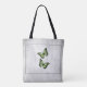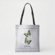 Lleve todos sus artículos cuando esté de viaje con un Tote personalizado de la flor de mariposa verde. El diseño del tote presenta un par de mariposas vibrantes que descansan sobre una vid floral blanca sobre un fondo gris claro. También hay artículos de regalo adicionales disponibles con este diseño.