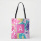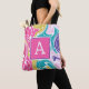 Bolsa de tote con monograma giratorio colorido con un diseño de mármol pastel y un personalizable con tu nombre inicial. Perfecto regalo personalizado para mujeres, adolescentes y chicas.