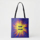 Esta bolsa de tetas presenta un patrón abstracto de estallido político en rojo, amarillo y azul con las palabras Dump Trump en el centro. El texto se puede personalizar.