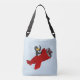 Bolsa corporal con diseño con ilustracion de un pingüino volando un plano rojo; ilustrado por Radka Kavalcova / MaxiHarmony