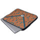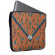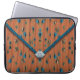 El diseño de esta funda de portátil Neoprene, una declaración de moda y estilo versátil, se realiza al estilo de una bolsa de embrague de sobre. Es un patrón que se parece a una tela de lazo en un color naranja quemado, con esferas emergiendo a través de la tela en tonos naranja amarillo y azul acuático. Las formas son manchadas como si estuvieran cayendo. La parte superior del bolso está bordeada por una banda de azules texturados, con un borde naranja rojo muy delgado. En el bolso hay un cierre en forma de diamante de plata azul en la punta de la solapa. En este es un monograma que está configurado para que usted personalize, o elimine si lo prefiere.