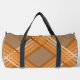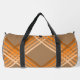 Líneas naranjas en cinco sombras, de oscuro a claro, de abajo a arriba. Dos conjuntos de rayas se colocan diagonalmente, reuniéndose en el centro de la parte superior e inferior de la bolsa a cada lado. Estos dos conjuntos se replican y giran, de manera que se cruzan. El fondo de toda la bolsa es marrón claro.