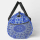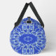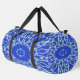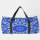 Bolsa Duffel, Un diseño elegante de color azul. Un diseño creativo de bolso Duffle a la moda. Una bolsa Duffle es una bolsa cilíndrica, se usa normalmente para llevar ropa y objetos personales durante viajes o actividades deportivas debido a su espacioso interior y facilidad para llevar con correas o asas de hombro.
