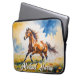 Bolsa de electrónica con un caballo corriendo por un prado de flores silvestres. Personalizar con el nombre de su elección.