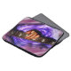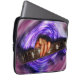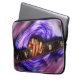 Imagen digital de una mano que agarra una guitarra mientras cae en un vorágine violeta giratorio.