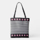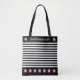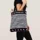 Elegante bolsa de rayas blancas y negras con hermosas flores rosadas y texto personalizado "Eco Friendly Life". ¡Vamos a difundir buenas vibraciones!