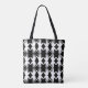 Bolsa Tote con la imagen de las manos blancas sobre una bolsa negra colocada en un patrón de espejos.