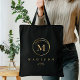 Esta bolsa Monograma Black Gold Tote Bag es un accesorio elegante y elegante, diseñado con una elegante paleta de color negro y dorado. Con caligrafía personalizada, es perfecto para damas de honor o como regalo para ella. Con su diseño minimalista y moderno, este tote de moda es práctico y moda, por lo que es una elección ideal para el uso diario o para ocasiones especiales.