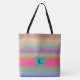 Este bolso de teta monogramado de impresión completa presenta un patrón de banda horizontal colorido con un monograma inicial en el centro. Puede personalizar este producto utilizando la plantilla personalizado. Este artículo viene en tamaños grandes y medianos y también está disponible en el estilo de las bolsas de cuerpo cruzado.