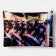 La obra de arte de ZoeSPEAK en esta gran bolsa de accesorios es una fotografía original de una batería. Los brillantes tambores negros con sus bordes plateados reflejan los colores de las luces del estudio, azules, rojos y verdes. Los platillos sobre los tambores esperan ser golpeados.