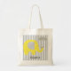 Un lindo elefante diseña bolsas de tote para complacer tanto a los niños como a los adultos que aman a los elefantes, presenta un adorable elefante amarillo con orejas grises y un paraguas gris rayado a rayas en un fondo gris y blanco.