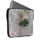 Esta impresionante bolsa de ordenador portátil contiene una fotografía de una especie británica de color verde azulado de escarabajo de aceite sentada en una flor blanca de Carnation. La foto fue tomada usando macrofotografía para mostrar el detalle y color de esta hermosa especie de escarabajo.