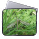 Esta impresionante bolsa para ordenador portátil incluye una hermosa foto de un balanceo con mosca de rana en algunas hojas de pasto. La fotografía es tan detallada que se puede ver el detalle intrincado en las alas de las criaturas y sus piernas completamente extendidas que hacen que algunas personas teman por ello.