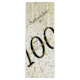 Este elegante arte gráfico es un diseño de cumpleaños para el centenario en blanco y negro. El número de tipografía negra, "100", está bordeado de oro, y el texto dorado, "Centenario", está bordeado de negro. El fondo oscuro es oro y blanco, salpicado de confeti. Si tienes a un ser querido que cumple 100 años, este diseño es una idea divertida para envolver regalos de 100 años.