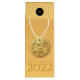 Diseño elegante con papel redondo dorado cortado de un tigre. Diseño en bolsa de regalo de vino con Large 2022, Year of the Tiger y monograma sobre redondeo negro + la misma imagen de fondo en la parte posterior. Puede cambiar fácilmente el texto (fuente, color, tamaño y posición) haciendo clic en el botón personalizar.