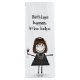 Chica de garrotes con pelo, zapatillas, polka dot dress, perla collar, anteojos y sosteniendo un vaso de vino tinto con fondo blanco. Se puede cambiar el fondo blanco. El patrón de fondo de puntos polka blanco y negro está bloqueado en su lugar.