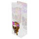 Bolsa de regalo de vino de cráneo para Halloween o el Día de los Muertos. Esta cabeza de esqueleto está adornada con flores de colores para un fiesta feliz de Halloween.