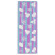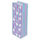 Bolsa de navidades con fondo morado y azul, mitones blancos, gorras y copos de nieve.