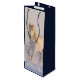 Una bolsa de regalo de vino para Navidades con una fotografía de un bello caballo blanco. Corriendo a través de un campo cubierto de nieve. Majestuoso y bonito.