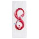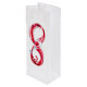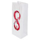 Símbolo infinito de flujo continuo de vino tinto vertiendo en vidrio de vidrio sobre fondo blanco.