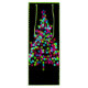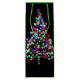 Las luces de un árbol de Navidad forman un impresionante efecto bokeh en tonos rosa, azul, verde y morado sobre negro.
