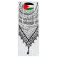 Cubierta blanca y negra palestina/árabe Keffiyeh diseñada como si estuviera envuelta alrededor del cuello, elemento aislado en blanco. El keffiyeh, también conocido como hatta, es un discurso árabe tradicional. Históricamente, la usaban las comunidades nómadas -o beduinos- en la Palestina histórica. Está hecho típicamente de algodón y adornado con patrones trenzados distintivos. Diseño creado por BluedarkArt TheChameleonArt.