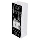 Esta bonita bolsa de regalo de vino de nieve es personalizable para que añadas tu propio mensaje El corto versículo de navidades en la parte posterior de la bolsa también es personalizable. El muñeco de nieve sonriente lleva su gorra negro favorito y su bufanda de rayas blancas y espalda, está mirando hacia abajo a sus navidades cargando con una rama de árbol esperando que santa lo llene con regalos especiales. Al fondo las estrellas brillan y los árboles están cubiertos de nieve. Esta bolsa de vino original de temporada es una excelente presentación festiva para la mayoría de los regalos. El original ilustracion de snowman es un dibujo de lápiz y tinta, hace una fresca bolsa de regalo de vino blanco y negro de moda.