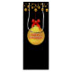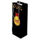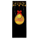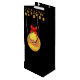Hermosa bolsa de regalo con una gran bola de Navidades dorados y puntos de polka dorados sobre fondo negro. El texto de las vacaciones felices puede ser personalizado. Ideal para el vino y otros regalos.