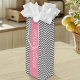 Bolsa Para Vino Nombre personalizado de los Chevrons rosa y gris p
