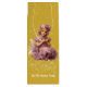 Bolsa de regalo de Feliz Navidad con un ilustracion nostálgico de un chica angélico en helado y rosa pálido sobre un fondo dorado amarillo. Una exclusiva y grandiosa bolsa de regalo. Personalizar con su elección de texto en la parte delantera y trasera. Que tengan una Nostálgica Feliz Navidad. Disponible en diferentes colores, tamaños y acabados.