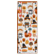 Bolsa de regalo con un patrón estacional de Acción de Gracias. Con peregrinos extravagantes, pavos, tarta de calabaza y otros elementos temáticos de otoño.