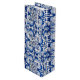 Patrón floral antiguo Azulejo Tile en azul y blanco transportado a la superficie de una bolsa moderna de regalo de vino, preservando su historia y tradición. Azulejo es una forma de baldosas de cerámica pintadas en portugués o español, de cristal de hojaldre. Se ha convertido en un aspecto típico de la cultura portuguesa. Portugal importó azulejos de España, y su uso se extendió en la arquitectura religiosa y privada, particularmente en las fachadas.