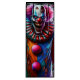 Bolsa de regalo de vino de fiesta de Halloween. Dejemos que comiencen los juegos. Atractivo payaso en una cabina de juego de carnaval con un psicodélico libro de historietas estilo bolso de regalo de la fiesta de Halloween.