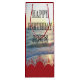 Disponen de un lienzo pintado con la serena puesta de sol sobre el océano, adornado con el sincero saludo de "Feliz Cumpleaños Jesús" y adornado con arboles de Navidad llenos descansando sobre una serie de colinas rojas en la base del diseño.