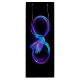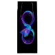 Símbolo de infinito violeta y brillante con colibrí azul sobre fondo negro. Neón.
