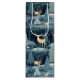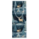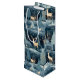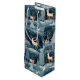 A snowy midnight blue field full of tan deer and robust pine trees.