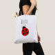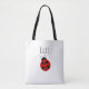 Añade el nombre de tu hija a esta linda bolsa personalizada de mariquita de mariquita con puntito de polka roja y blanca.