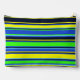 Haga una declaración con esta bolsita de cierre a rayas en azul vibrante, verde cal y amarillo. Diseñado para los amantes del color, esta gran bolsa es perfecta para la organización de sus cosméticos, material escolar, material de viaje o accesorios tecnológicos. Duradero y elegante, es un atractivo añadido a cualquier mala mesa o escritorio.