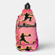 Un convento agarra y anda con una bolsa de honda.