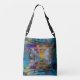 Un diseño abstracto colorido cubre esta bolsa tote única.