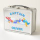 Esta caja de almuerzo de metal personalizada presenta tres aviones lindos de diferentes colores sobre las nubes.