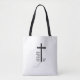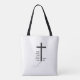 bolsa tote de 16"x16" con cruz cristiana y texto acompañante